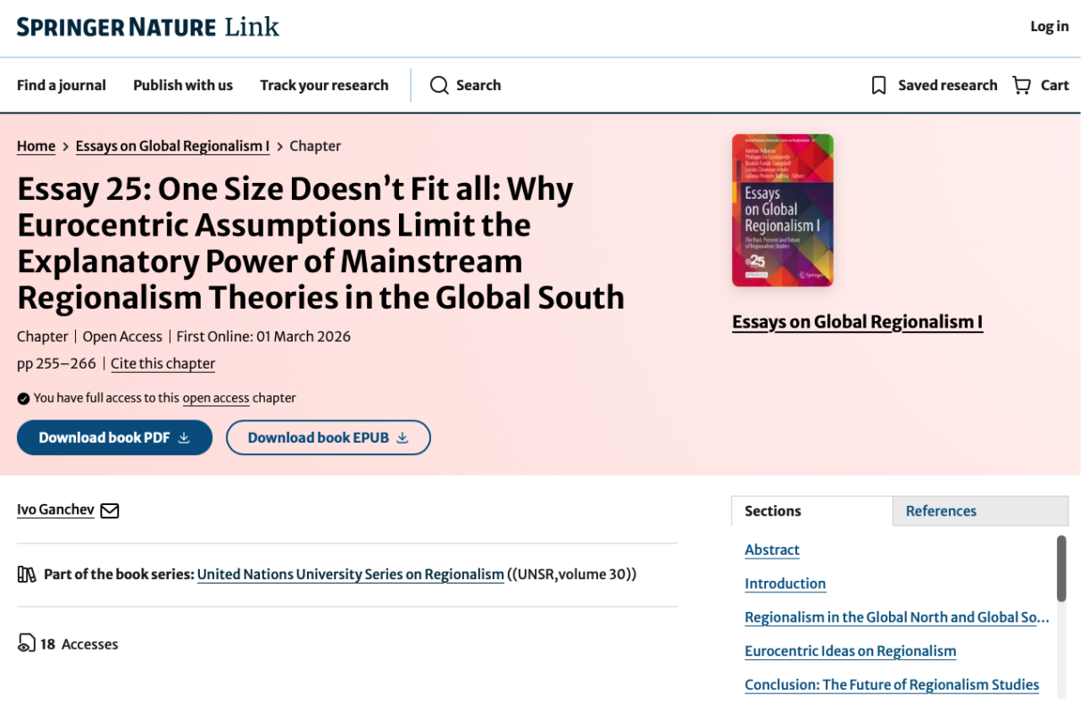 An open-access chapter on why regionalism theories can appear universal yet still carry Europe-based assumptions, published in UNU-CRIS’s two-volume Essays on Global Regionalism project. Dr. Ivo Ganchev has published a new open-access essay examining a persistent puzzle in the study of regional integration: why regional organisations in Africa, Latin America, and parts of Asia are so frequently […]